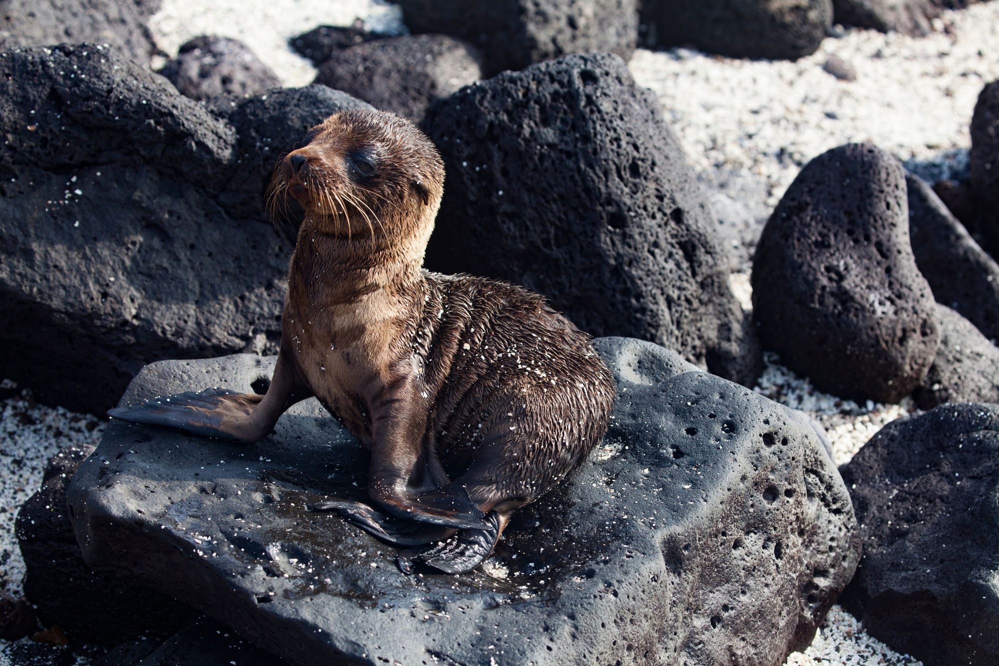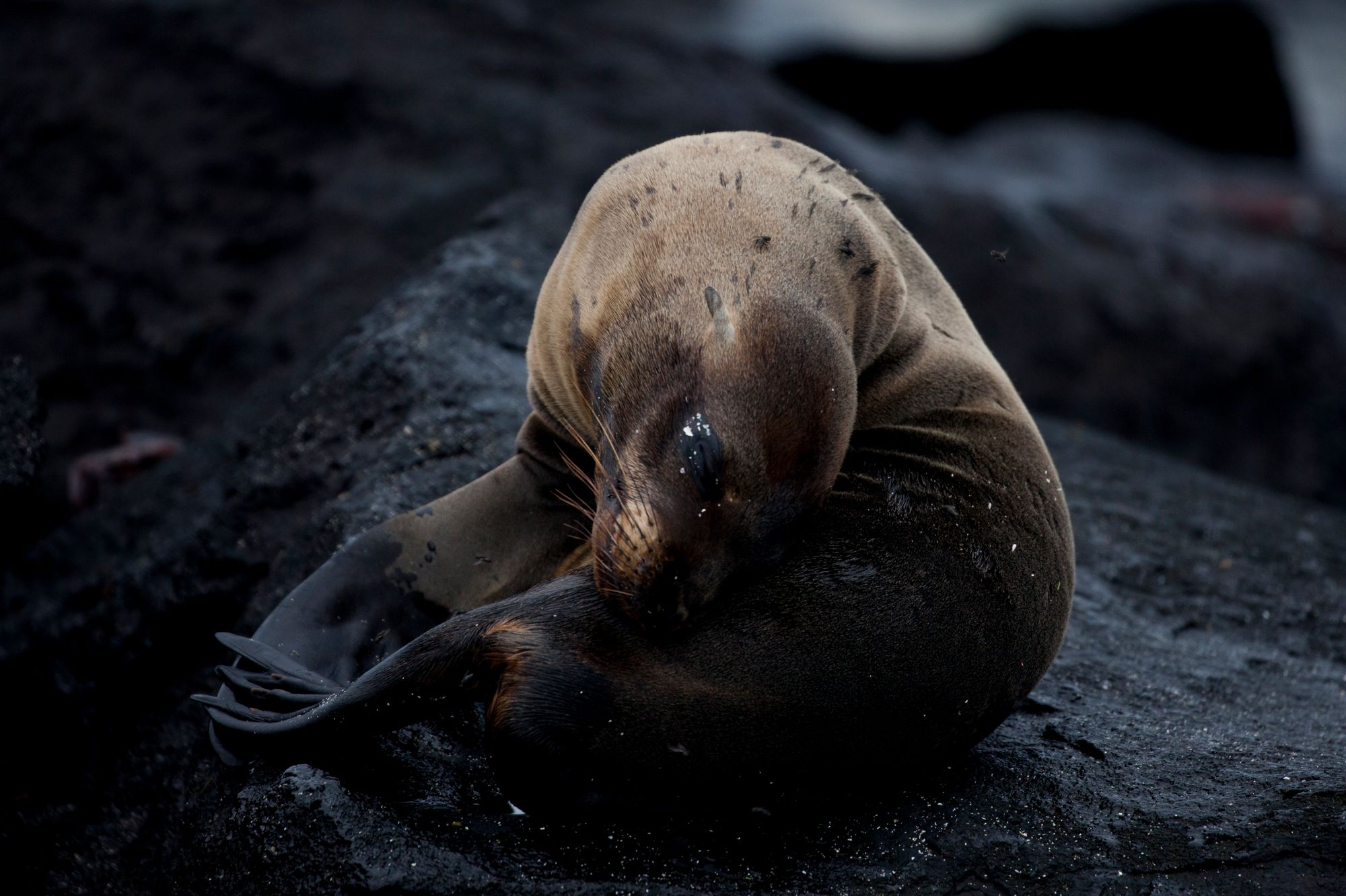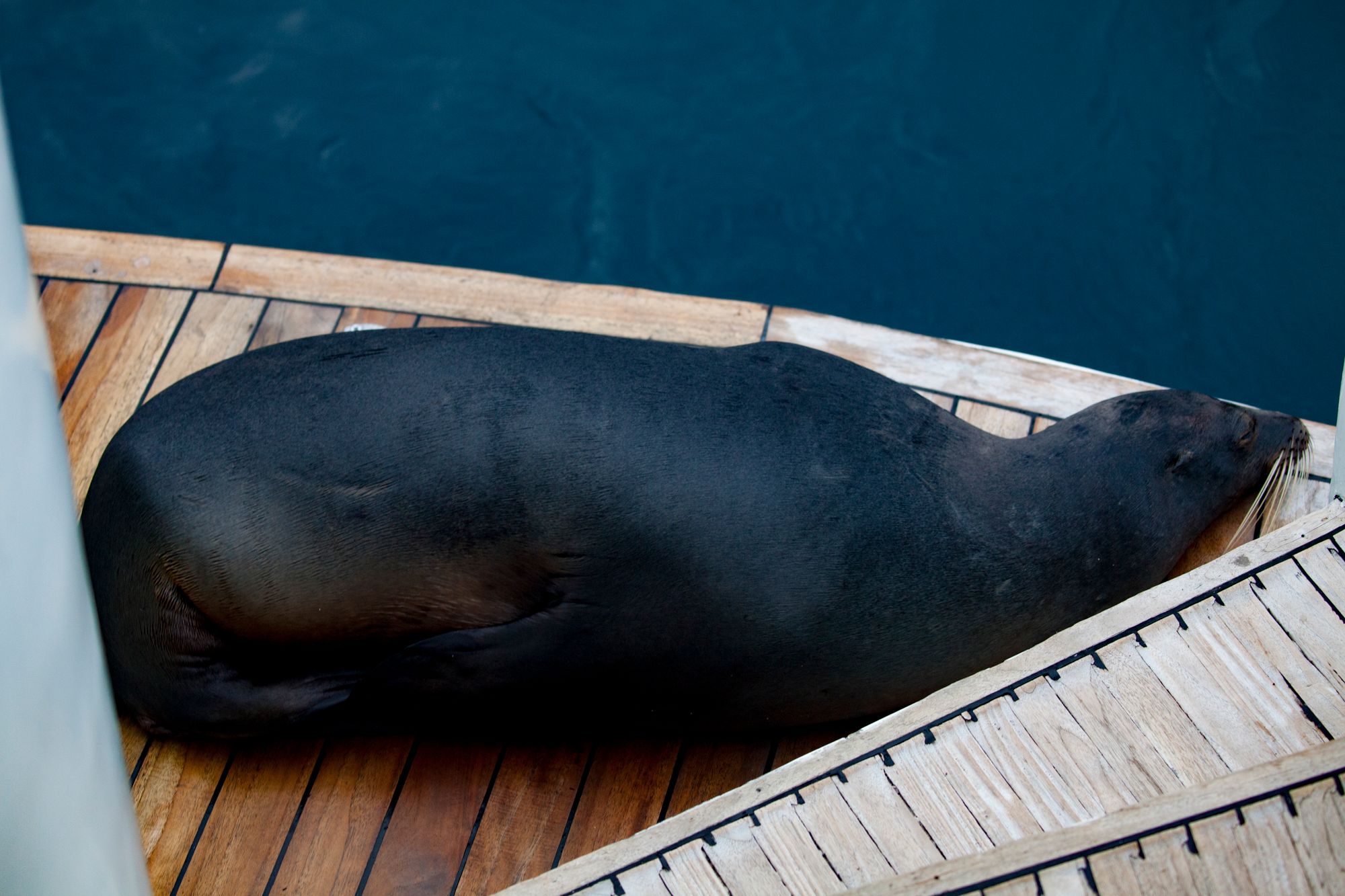 When we arrived back to our boat after touring Floreana, we found a sea lion had beached itself on the swim platform at the back, blocking our ability to board on one side. Soon we saw why. A school of at least half a dozen sharks were surrounding the boat, and hunting sea lions under the hull. It was a fight and feast in the water until the early morning.