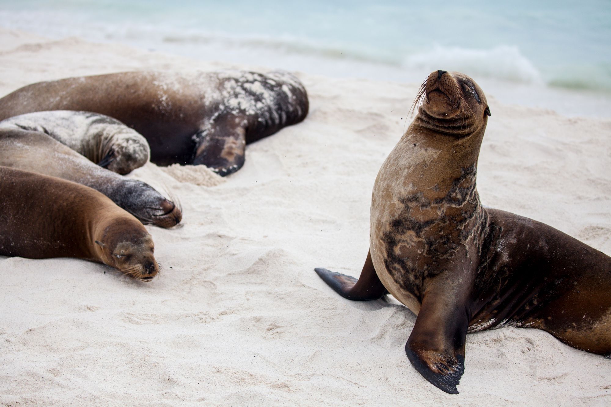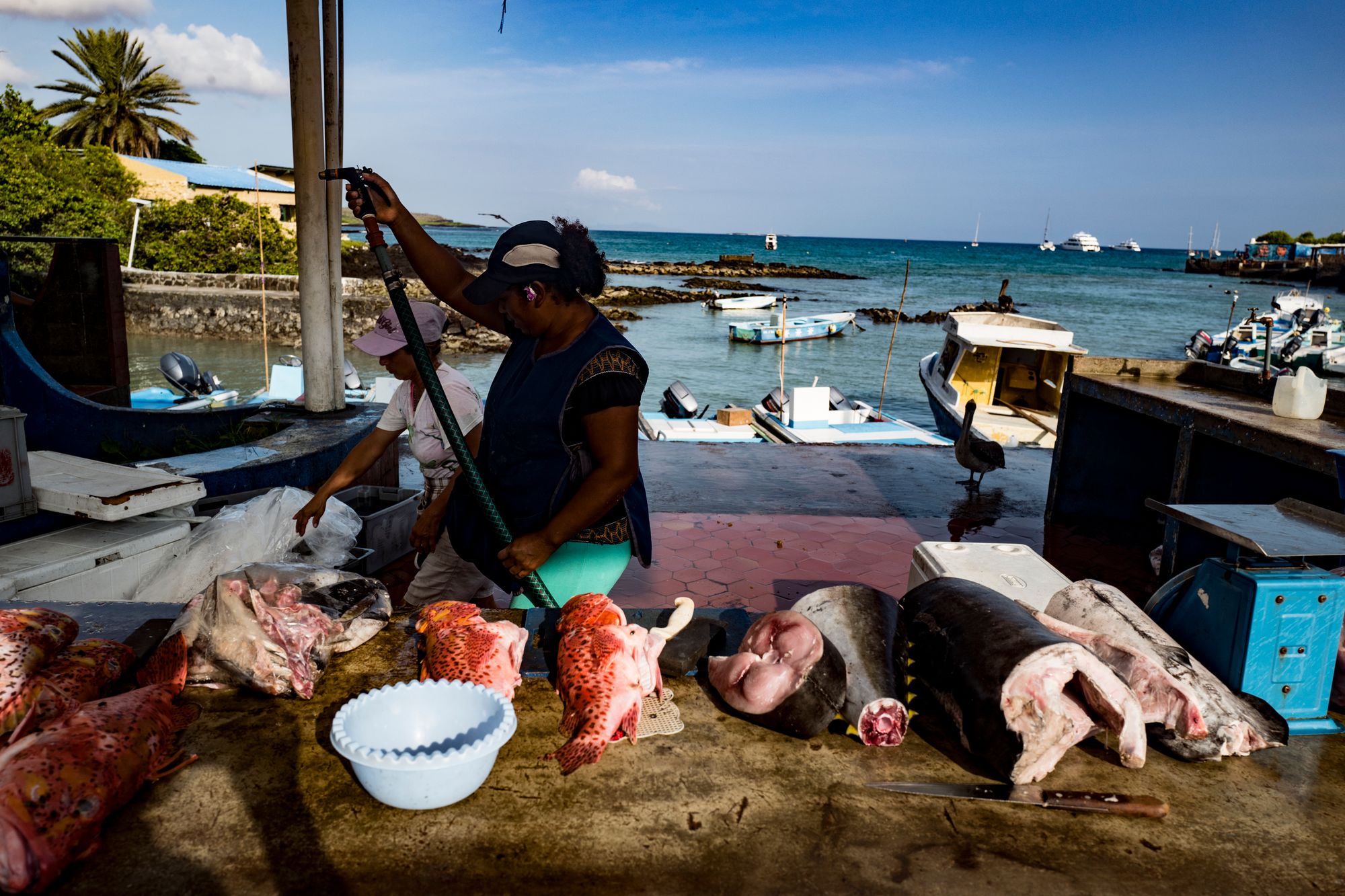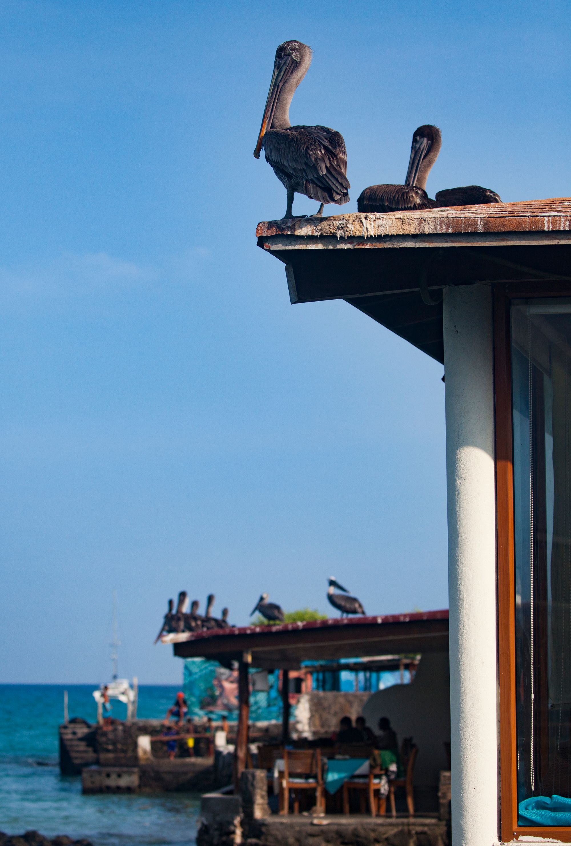 When we arrived back to our boat after touring Floreana, we found a sea lion had beached itself on the swim platform at the back, blocking our ability to board on one side. Soon we saw why. A school of at least half a dozen sharks were surrounding the boat, and hunting sea lions under the hull. It was a fight and feast in the water until the early morning.